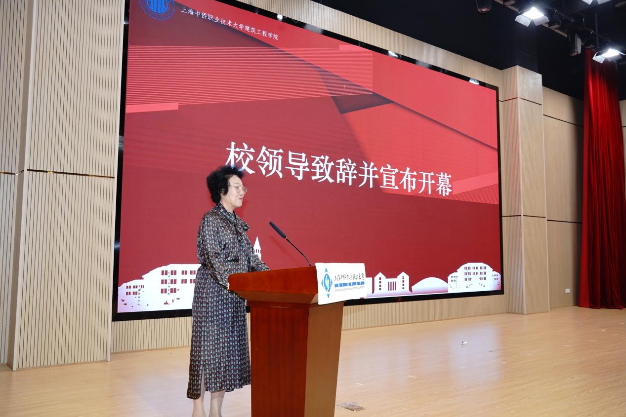 第十二项议程,上海中侨职业技术大学副校长刘淑芸致辞并宣布第五届“数智匠心,建领未来”鲁班文化节正式开幕。