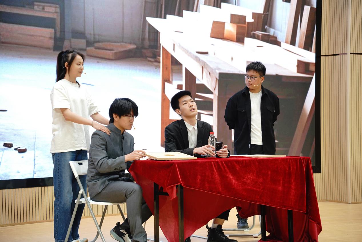 第六项议程,建筑工程学院独创话剧《流量匠心》。剧中讲述主角因拍摄匠人以博取流量而前往工匠师傅的工作室,经一系列变故后认可了匠人的努力与付出,并最终成为一名工匠师傅的故事。话剧内涵致敬匠心传承者,指引青年要尊重劳动成果,传承工匠精神。